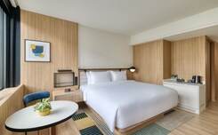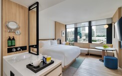 Luxury suites with stunning city views, iconic rooftop bar, close to vibrant local attractions