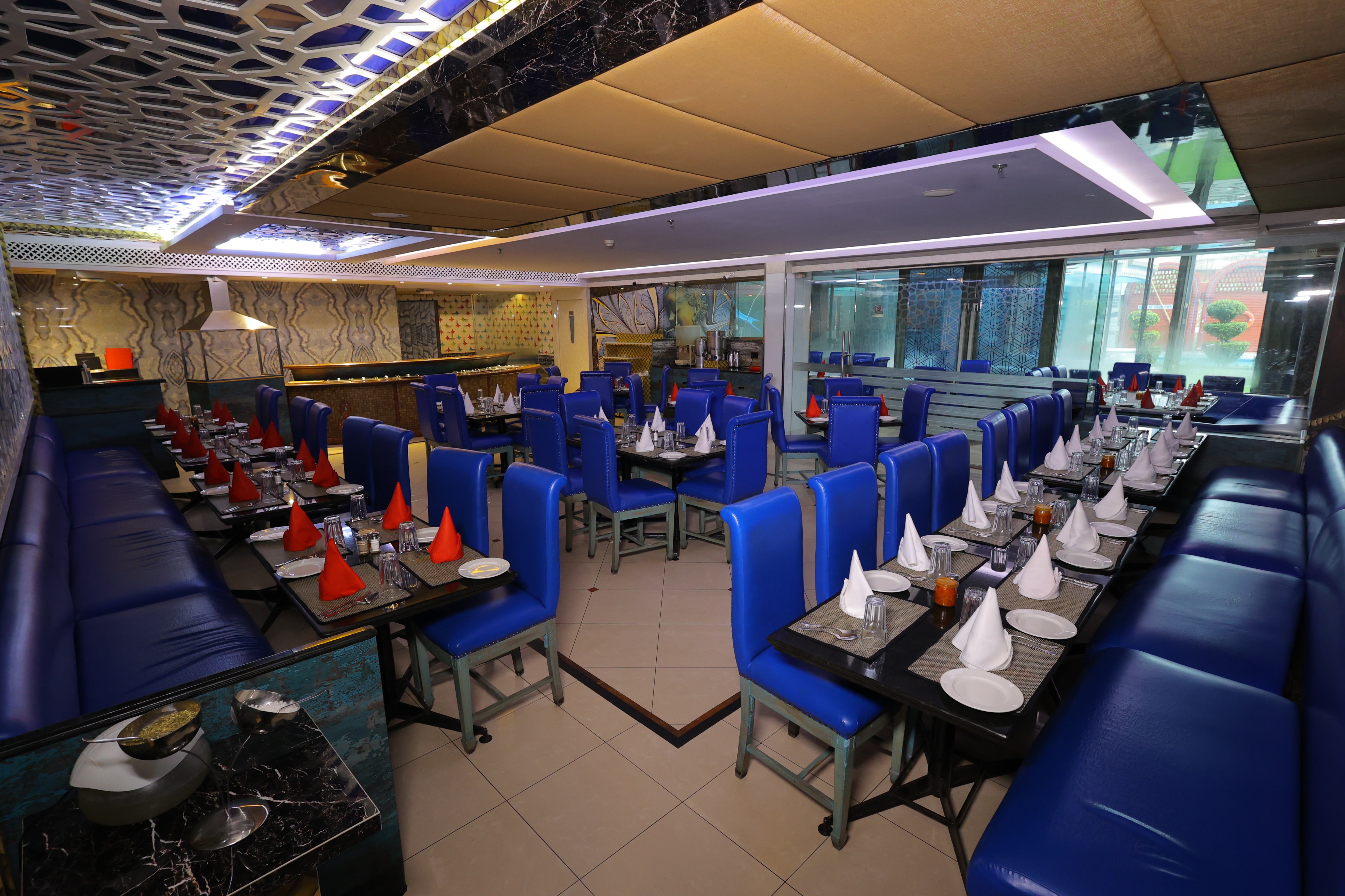 The in-house restaurant caters various cuisines including Mughlai, Chinese, South Indian, and continental.