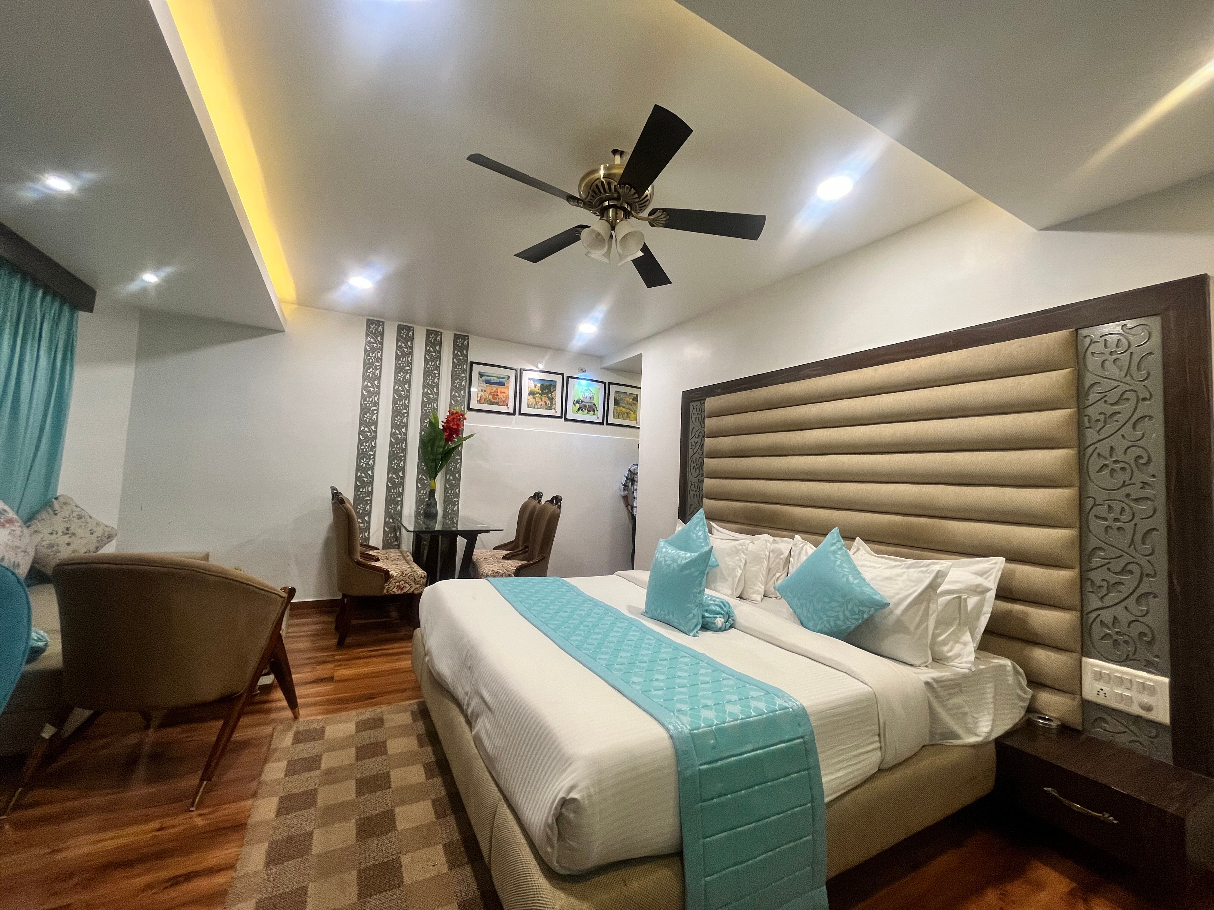 Luxury Rajasthan-style hotel offering a mix of modern comfort and traditional Rajasthani décor.