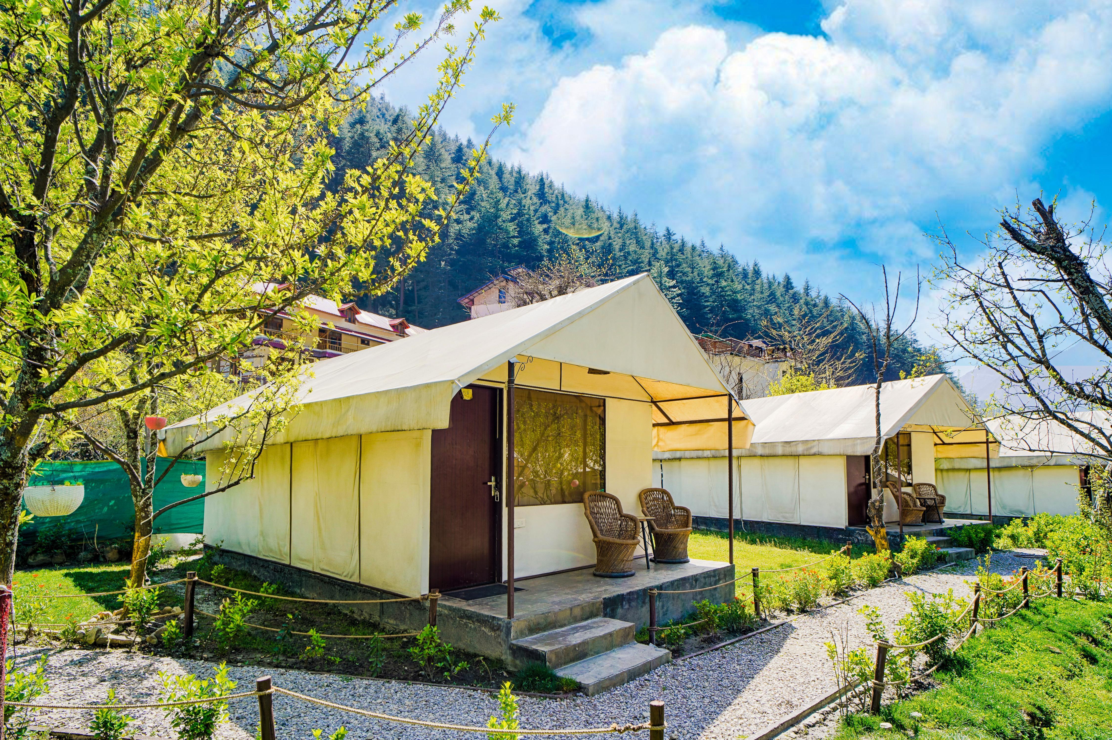 Serene views by Parvati river, cozy tents, bonfires available on demand