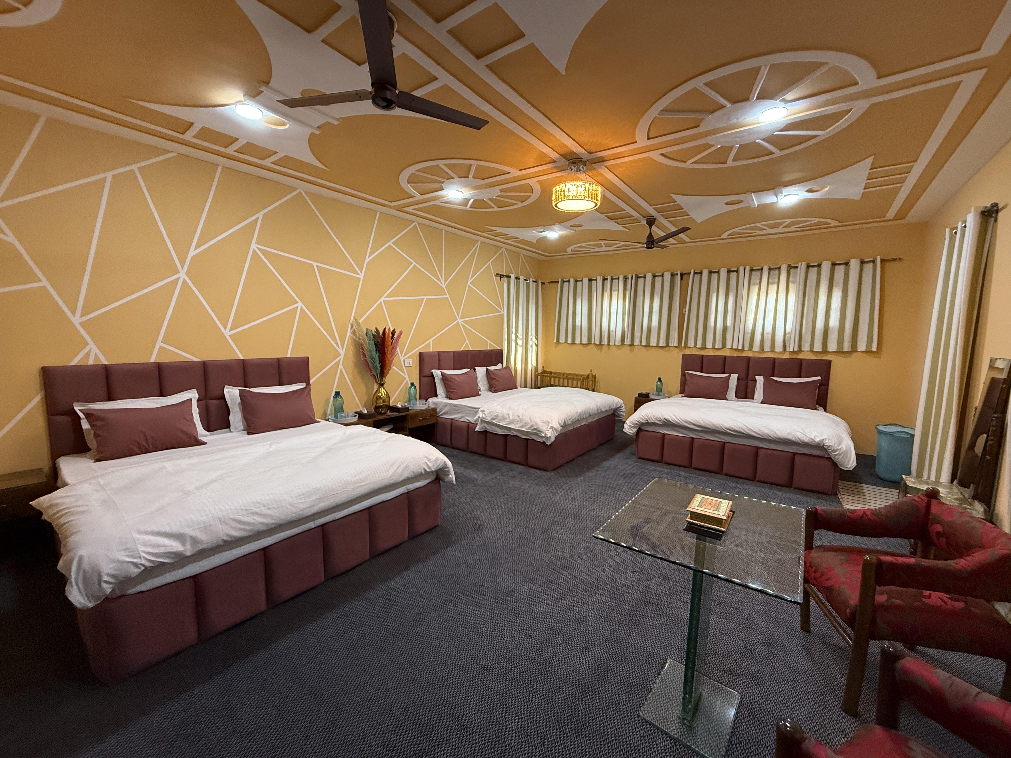 3 Double Beds, Extra 1 Mattress available, Mountain View, Attached Bathroom