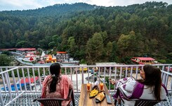 Serene surroundings amidst hills, proximity to Kainchi Dham, cozy rooms with mountain views