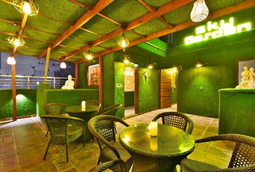 The hotel features a lavish restaurant serving authentic Indian cuisine.