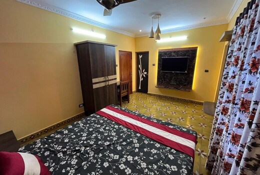 Elegant Accommodation: Honeycomb Abode in Salem offers a serene garden and a spacious terrace. Guests enjoy free WiFi throughout the property, ensuring connectivity and comfort. Comfortable Amenities: The guest house features a lounge, hot tub, shared kitchen, and outdoor seating area. Family rooms cater to all travellers, while private check-in and check-out services provide a seamless arrival and departure experience. Modern Facilities: Each room is equipped with a balcony, bathrobes, bath, tea and coffee maker, mountain views, dining table, refrigerator, shower, TV, electric kettle, and wardrobe. Additional amenities include executive lounge access and free on-site private parking. Convenient Location: Salem Junction is 42 km away, and Salem Airport is 56 km from the property. Guests can explore nearby attractions with ease.