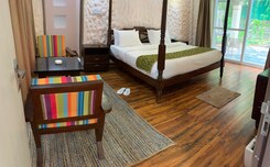 Serene cottages in lush nature, close to Kanha National Park, scenic swimming pool experience