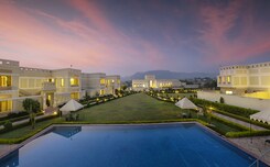 Lush green surroundings near Jaipur, private villas with pools, indoor and outdoor games