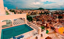 Stunning sunset views of Fatehsagar Lake, beautiful rooftop dining, roomy lake-view rooms ₹6,000