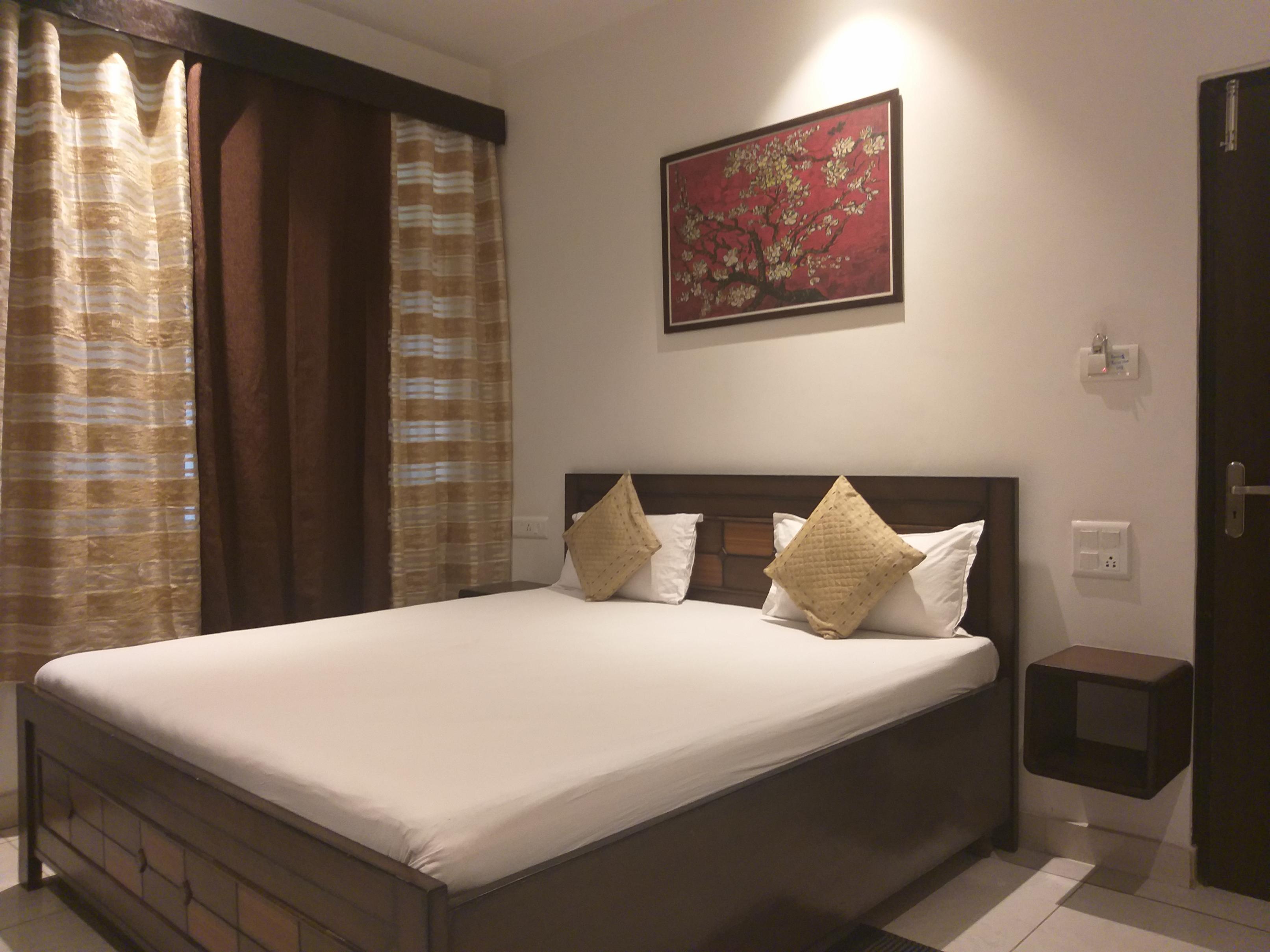 1 Queen Bed, extra 1 Mattress available , Attached Bathroom