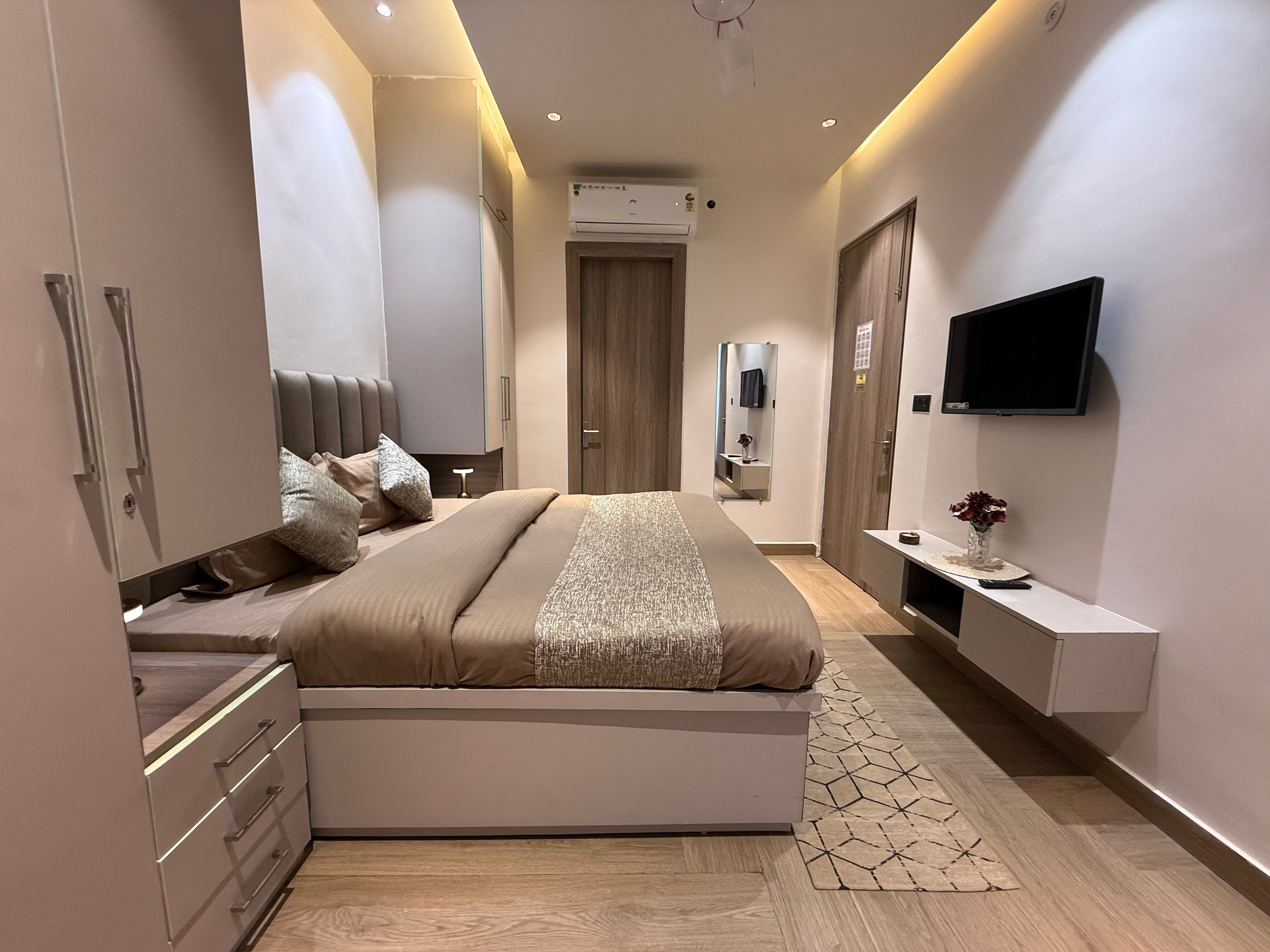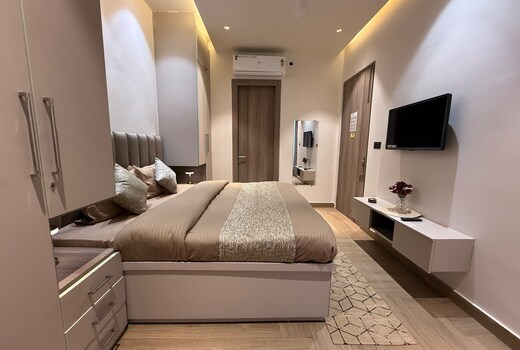 Spacious Accommodation: Nirvanika Wellness in Rishikesh offers spacious aparthotel units with two bedrooms and two bathrooms. Each apartment includes a living room, balcony with scenic views, and a fully equipped kitchenette. Modern Amenities: Guests enjoy air-conditioning, a dining area, and a fully equipped kitchen with a refrigerator, microwave, and stovetop. Additional amenities include a TV, sofa, and tiled floors. Convenient Location: Located 23 km from Dehradun Airport and 8 km from Rishikesh Railway Station, the aparthotel provides easy access to local attractions such as Mansa Devi Temple and Ram Jhula. Free on-site private parking is available.