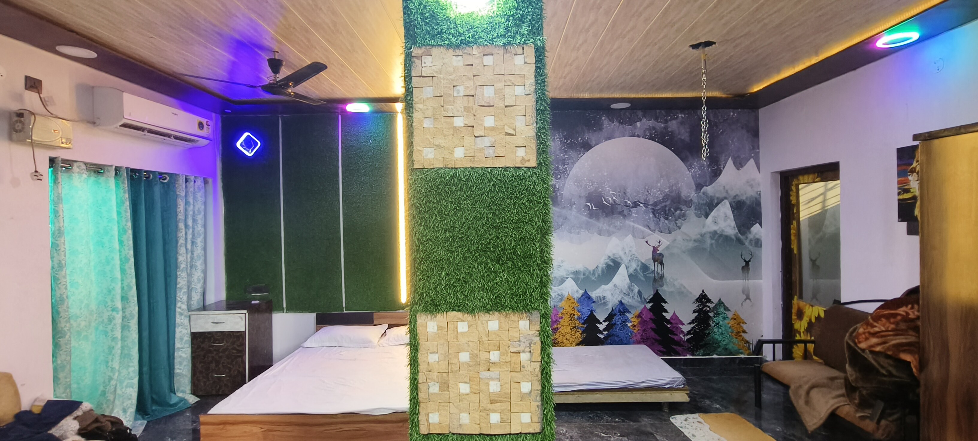 1 Double Bed, Extra 2 Mattresss available, Attached Bathroom, Attached Balcony