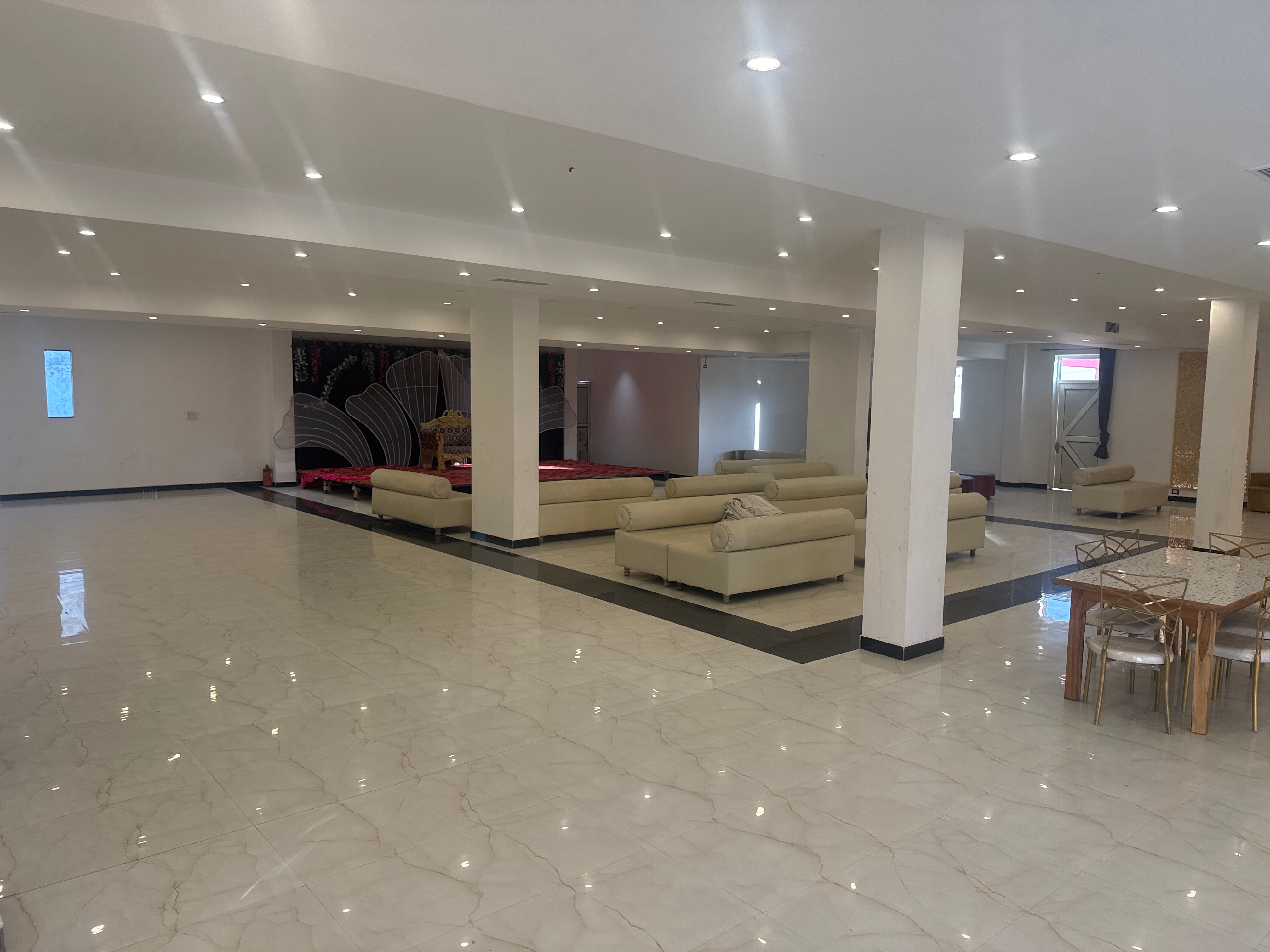 A grand, spacious wedding venue with luxurious accommodations, perfect for large celebrations, featuring beautifully garden, elegant banquet halls, and well-appointed guest rooms, ensuring a seamless and unforgettable wedding experience .