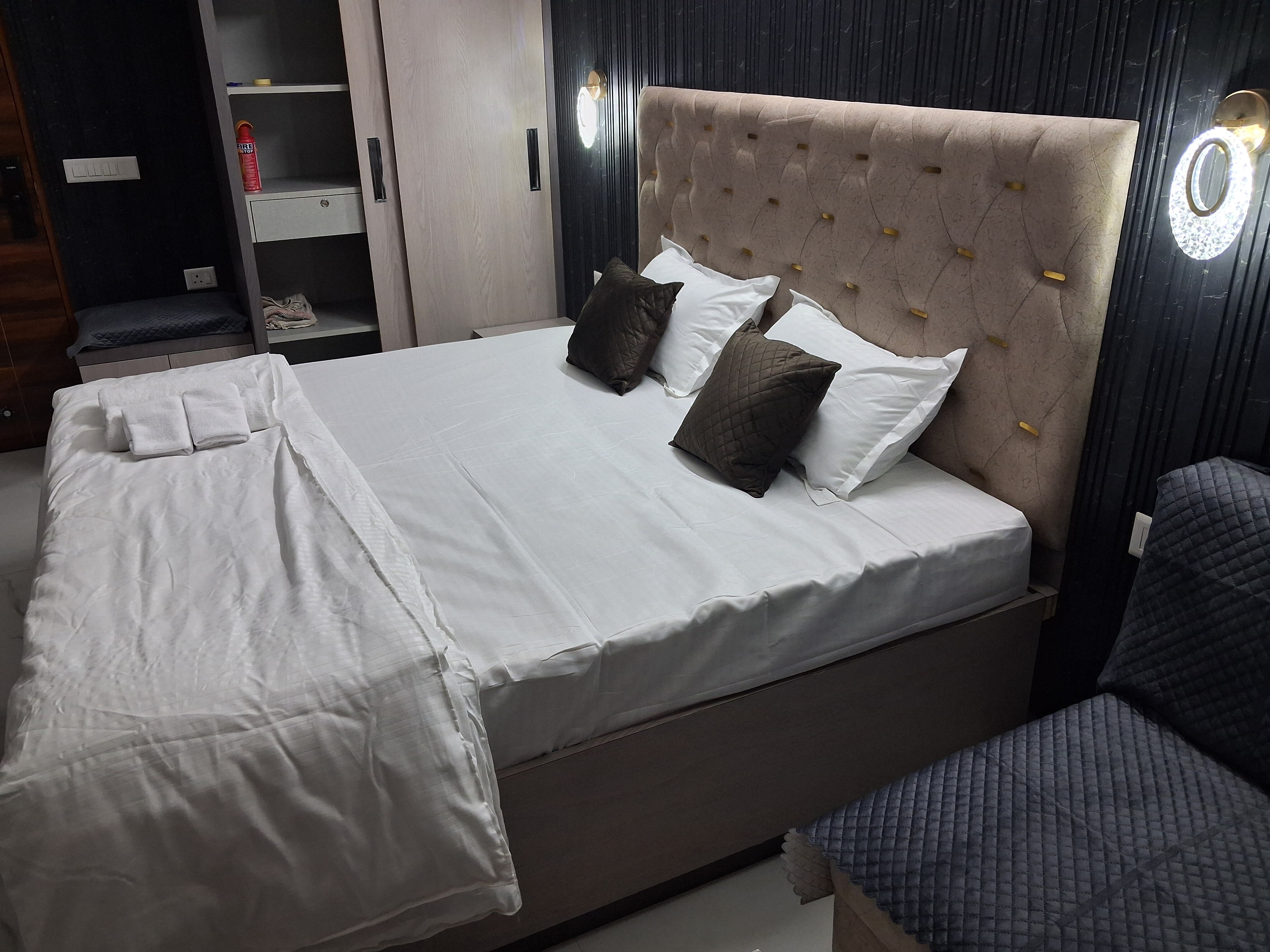Guests say this home is in a quiet area. Some info has been automatically Wel-come to Jaipur! Nestled in the most central area of the Pink City, this unique and aesthetic 1 bedroom studio apartment is artistically designed to make sure you enjoy the most luxurious stay along with all the amenities. Located near the main Jaipur railway junction , it is the perfect spot from where you can easily explore Jaipur like a local. From here, the Walled city is just a few minutes ride from tuk tuk so you can get to all the most popular attractions of Jaipur city easily. Our space is a beautifully furnished 1 bedroom studio apartment with juliet balcony, located in the heart of the Pink City Situated in the most central area our apartment is perfect for solo travellers, couples as well as families. With plenty of natural light combined with a small outer area offering you the views of the beautiful Jaipur city you can enjoy bright sunny mornings & sun set right from your room. The apartment where you will be staying comes with a beautifully furnished bedroom with an king size bed, Tv panel, a/c, Two seter sofa, centre table, attached private bathroom fully equipped kitchen (refrigerator, sandwich maker, water purifier, induction stove, hot water kettle cooking utensils), free Wifi, smart TV, smart looking sistam, cctv camera & free parking.