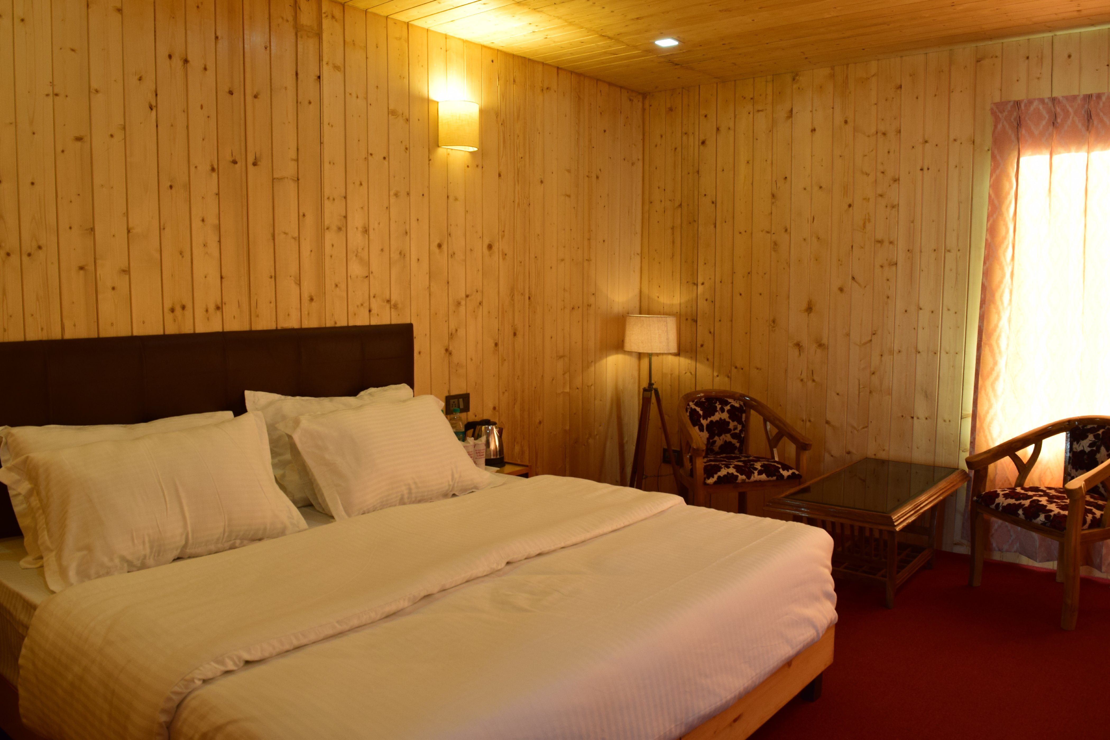 The hotel offers a stunning view of the valleys from Deluxe Cottages spread across 336 sq ft.