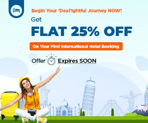 - Get Flat 25% OFF on your FIRST International Hotel Booking.